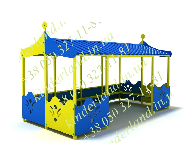 При этом стоит отметить, что конструкция теневого навеса позволяет воспитателям видеть каждого малыша, играющего внутри. Таким образом, «Сказка» - это один из наиболее оптимальный вариантов для детских садов, где дети выходят на уличные прогулки большими группами. При необходимости, площадь беседки позволяет проводить в теплое время года учебные занятия непосредственно на улице. В качестве покрытия использованы специальные лако-краски и покрытия, не вызывающие аллергические реакции, не обладающие редким запахом.