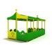 Каркас сделан из стальных труб различного сечения, обшит деревом. Навес – из поликарбоната: легкий и надежный, способный защитить от палящего солнца. Ударопрочный и термостойкий полимер, который сравнительно недавно стал использоваться в частном и городском строительстве, обладает рядом свойств, которые выгодно отличают его от прочих материалов, в том числе от силикатного стекла. Детское укрытие имеет яркий и в тоже время непритязательный дизайн.