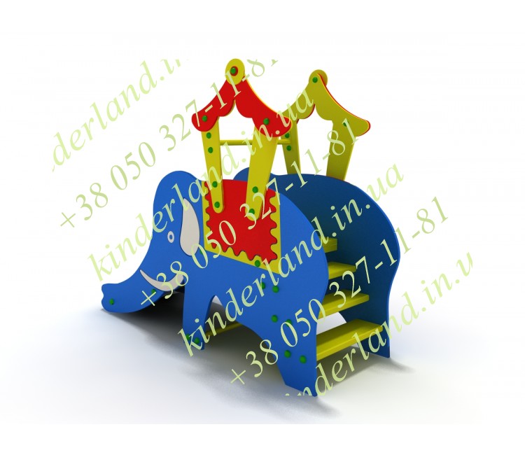 В каталоге интернет магазина «KinderLand» присутствует детская горка слоник под кодом 082, которая внешне выглядит как настоящий слон. Данная конструкция выполнена в ярких цветах, голубого, красного и жёлтого оттенка из прочных натуральных материалов. Наша компания всегда заботится о качестве своих изделий, потому во время производства мы используем сырьё соответствующее установленным стандартам. Применяются экологические плиты деревянной стружки, цельные профили металлические, полимеры.