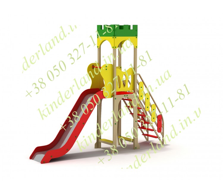 Компания «KinderLand» предлагает Вам подарить детям сказку – купить детскую горку «Замок» , выполненную со вкусом из самых прочных, а также безопасных и нетоксичных материалов. Взойдя по лесенке с помпезными перилами на площадку, маленький счастливчик очутится будто бы среди стен замковой башенки с зубчатыми стенами! А после этого, воображая себя героем чудесных историй, с восторгом прокатится вниз!