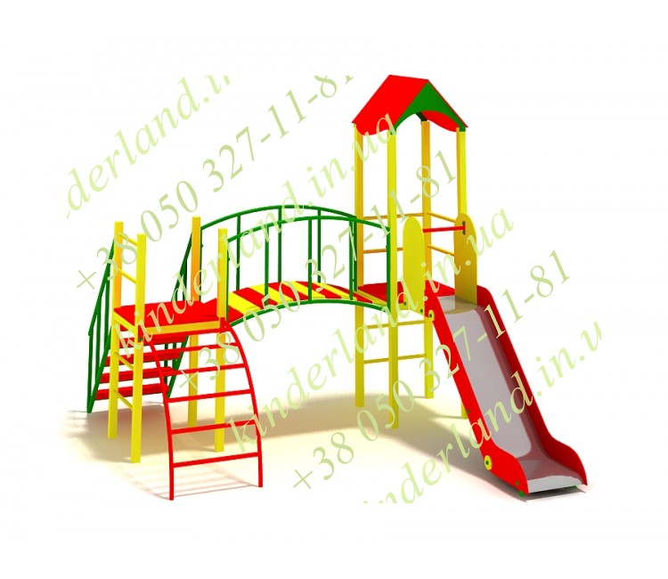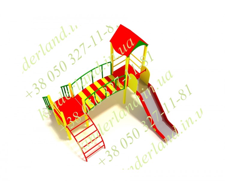 Данная модель игрового комплекса из серии «Малютка» обеспечит увлекательный досуг детям в возрасте от 3 до 6 лет. Ваш ребенок не почувствует скуки и усталости, поскольку у этого комплекса есть все необходимые составляющие для игры: башенку, полубашню, горку, удобную лесенку и безопасный трап, который соединяет все компоненты воедино.