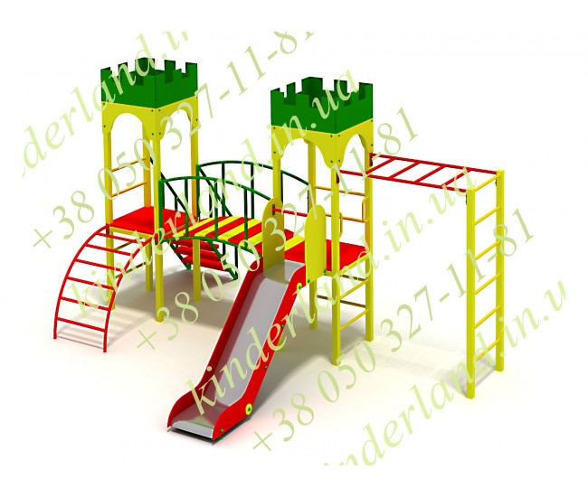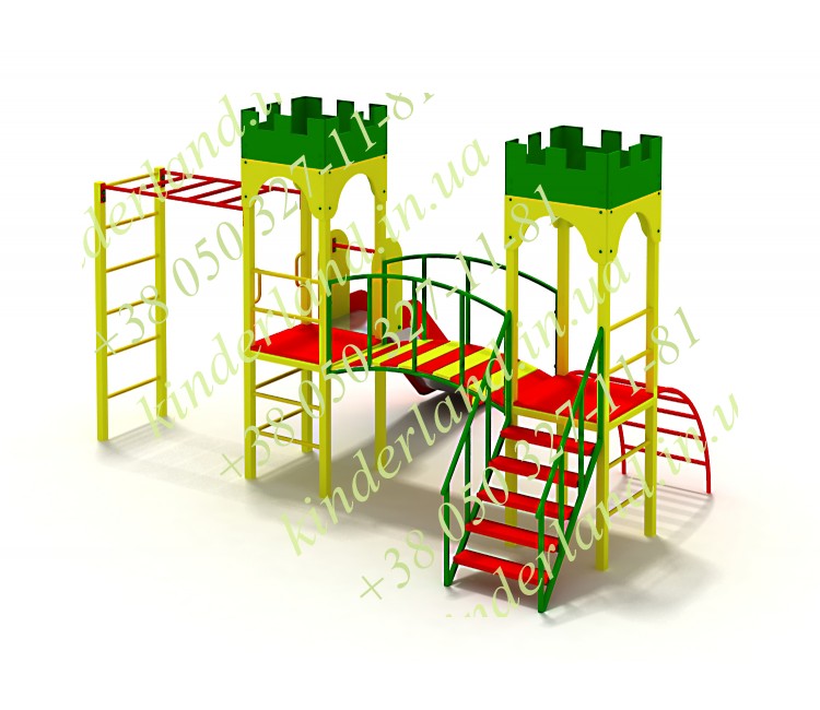 Это чудо производства детских игровых площадок обязательно понравиться любому родителю, а главное не просто заинтересует ребенка, а поспособствует ему обрести новых товарищей среди таких же увлеченных детей. Данная модель практически такая же, как и Малютка-4, то есть, изготовлена в виде замка, который имеет две башни и горку, но присутствует отличительная черта – у этого комплекса имеется рукоход.