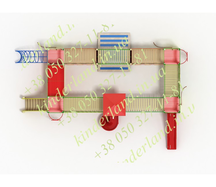Комплекс оснащен базовыми элементами спортивного снаряжения, позволяющими выполнять несложные атлетические упражнения. Лазы, горки, переходы будут способствовать тому, что в игровой форме дети улучшат свое физическое здоровье, а именно: