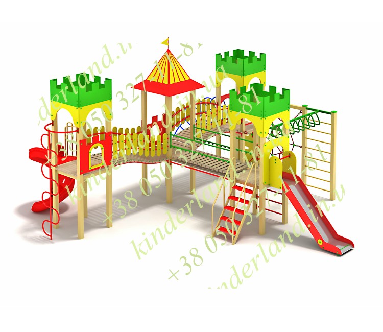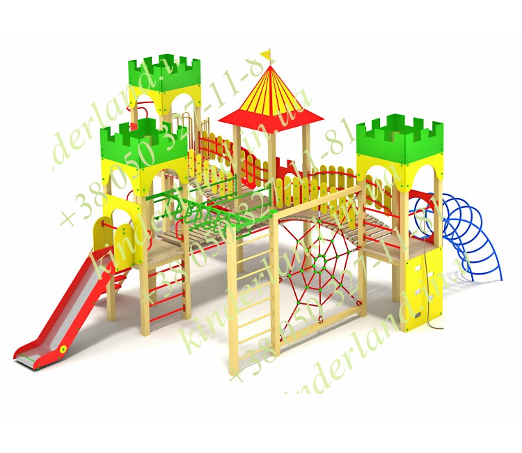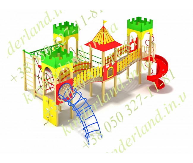 Детский игровой комплекс «Замок храбрых рыцарей -2» - один из самых компактных, но в то же время многофункциональных игровых комплексов серии «Замки». Оснащен лазами, горками, одна из которых винтовая, навесными переходами, лестницами. При необходимости может быть оснащен дополнительным оборудованием.