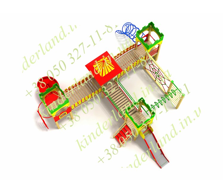 Детский комплекс создан из качественных материалов, а именно: клееного бруса. Несущие элементы конструкции сделаны из сертифицированных стальных труб. Каждый элемент изделия окрашен порошковыми красками. Красители подбирались исключительно с эко составами.