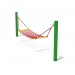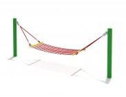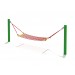 Качель Гамак состоит из двух металлических опор, на которые крепится крепким канатом сам сеточный гамак. Так как данные качели по своим габаритам довольно большие, на них может поместиться несколько ребят.