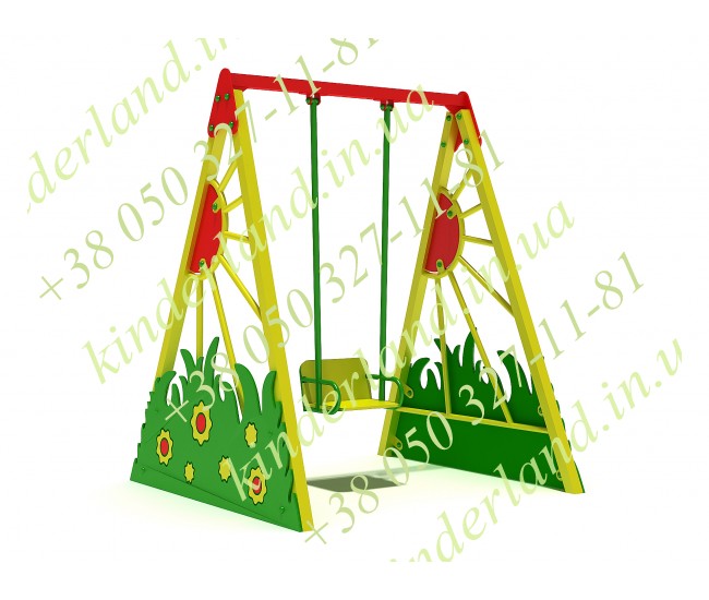 Интернет магазин Kinderlandпредлагает приобрести красочно оформленную детскую качель «Лужайка». Она имеет удобное сиденье со спинкой, что позволяет катать на ней деток начиная с полутора лет под присмотром взрослых. Качельсочетает желтый, красный и зеленый цвета, они выгладить очень привлекательно, поэтому непременно понравятся ребятам, которые любят яркие краски. Такая расцветка хорошо впишется в любую композицию игровой площадки, ведь их оформляют с использованием броских, ярких цветов.