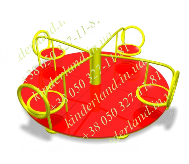 Компания KinderLand предлагает красочные карусели для 4 детей ярко-красного цвета с желтыми ручками, диаметром 1,6м. Карусель достаточно вместительная, деткам будет на ней просторно и комфортно. Они имеют удобные сидения, оборудованные спинку. Карусель удобна тем, что можно покататься одному, когда друзья заняты или пока не пришли на площадку, а если собраться вместе, развлечение будет намного веселей.